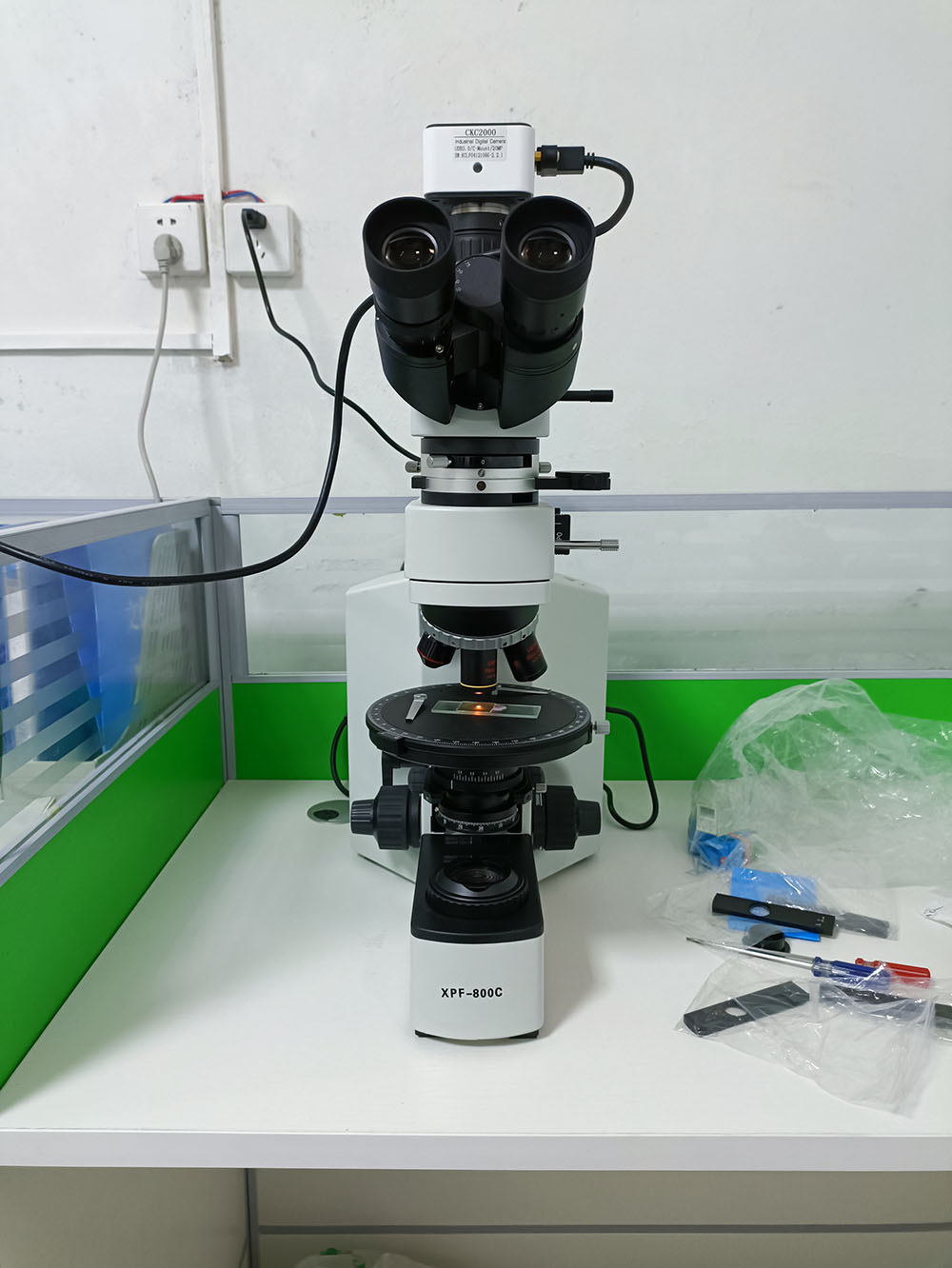 中化地质矿山总局河南地质局透反射偏光显微镜XPF-800C调试现场。