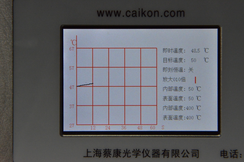 即刻恒温,在升温过程中的任意时刻按下此钮后,系统立即自动停止升温,并恒温在按下此钮时的即刻温度上。