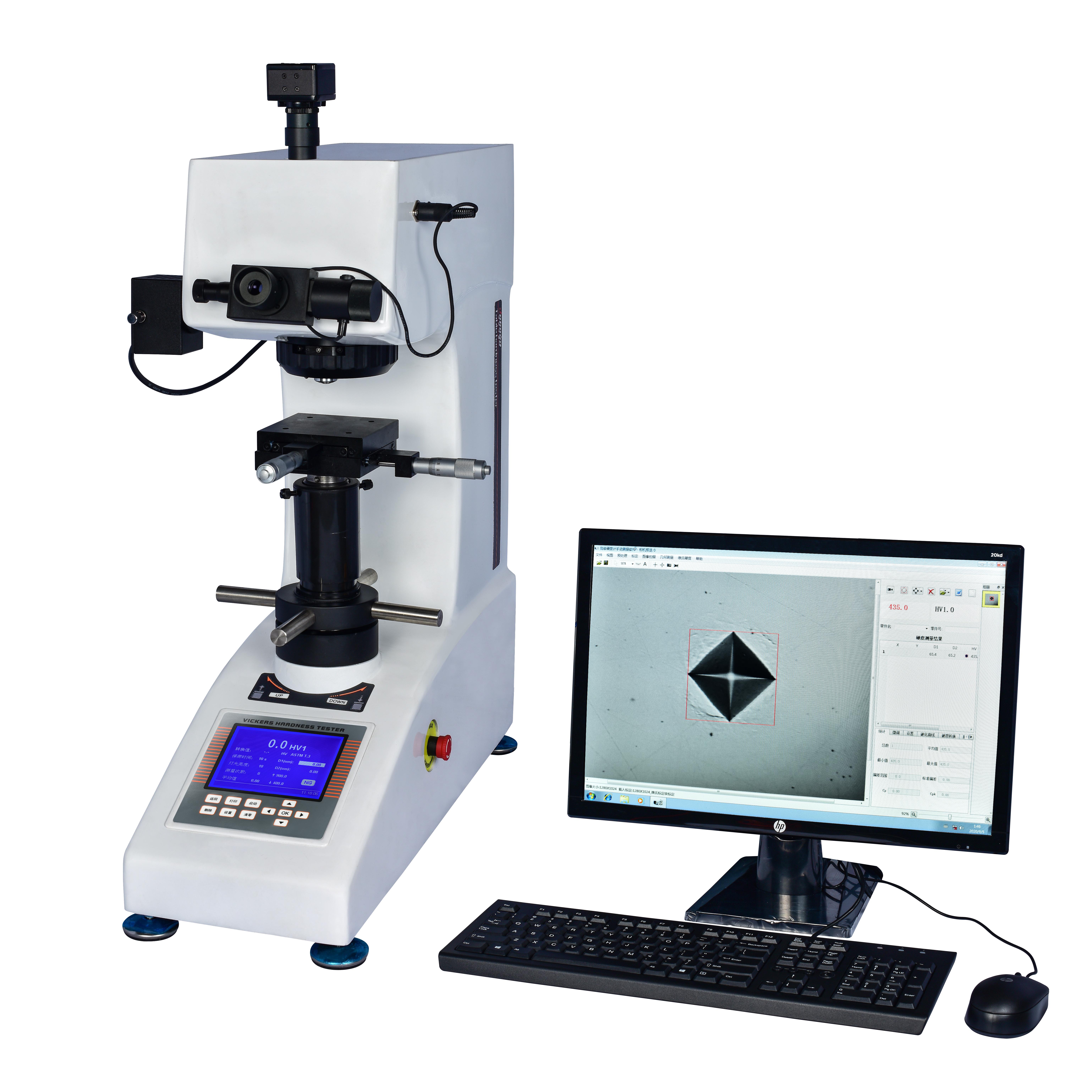 本机可配备维氏测量系统:可以进行每次加载荷和每次读取压痕的逐次实验。采用了观察方便的ccd摄像头、可在显示器上直接观察测量压痕,用鼠标测量精确度高,避免人工测量误差。对于设定试验条件,显示结果等均可清楚快捷地操作及显示。通过测量软件,可用计算机进行操作方便,实现单点测量可随机测量多点、统计测量数据,任意设定两点或多点测量点的间距作渗层深度测量 可沿X或Y两个方向测量、统计测量数据,根据用户输入的判定值自动计算硬化层深度.统计演算、换算、显示曲线判断是否合格等.可测量零件长度图形保存打印。